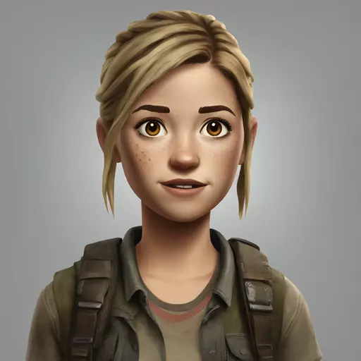 Ellie Williams from The Last of Us, she has brown hair and green eyes 絵文字